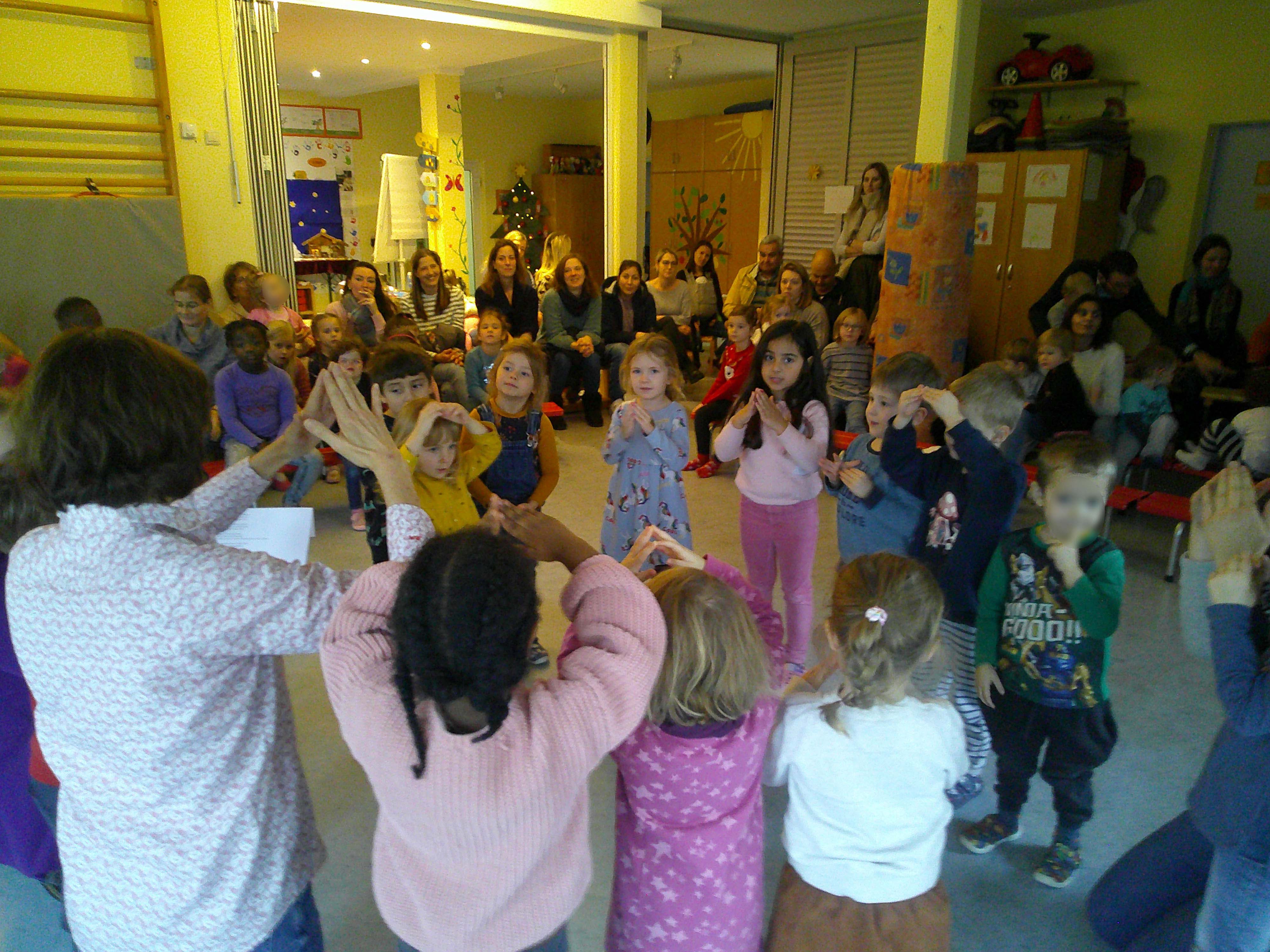Die ganze Adventszeit über haben sich die vier Gruppen des Kindergarten Eden getroffen, um einstudierte Lieder, Fingerspiele, Klangstücke und Bewegungs-Spiele zu präsentieren. Aber nicht nur das, in der ganzen Zeit wurde fleißig gebastelt, gebacken (mit Hilfe der Eltern), Weihnachtsgeschenke gemacht und den Adventsgeschichten gelauscht.