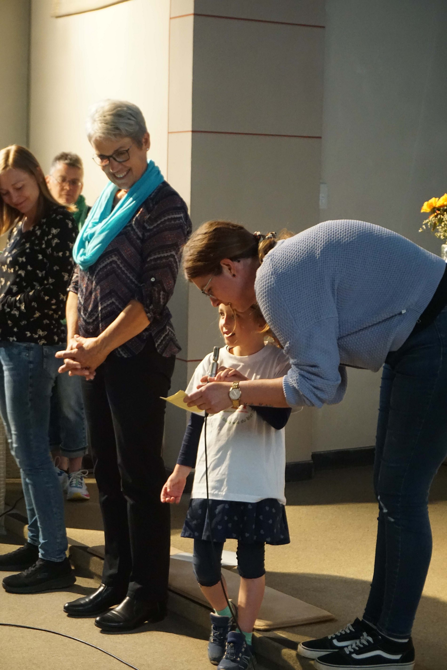 Die Erzieherinnen Frau Anna Brachmann und Frau Manuela Messinger führten durch den Gottesdienst, den sie auch gemeinsam mit den Kindern einstudiert hatten.
