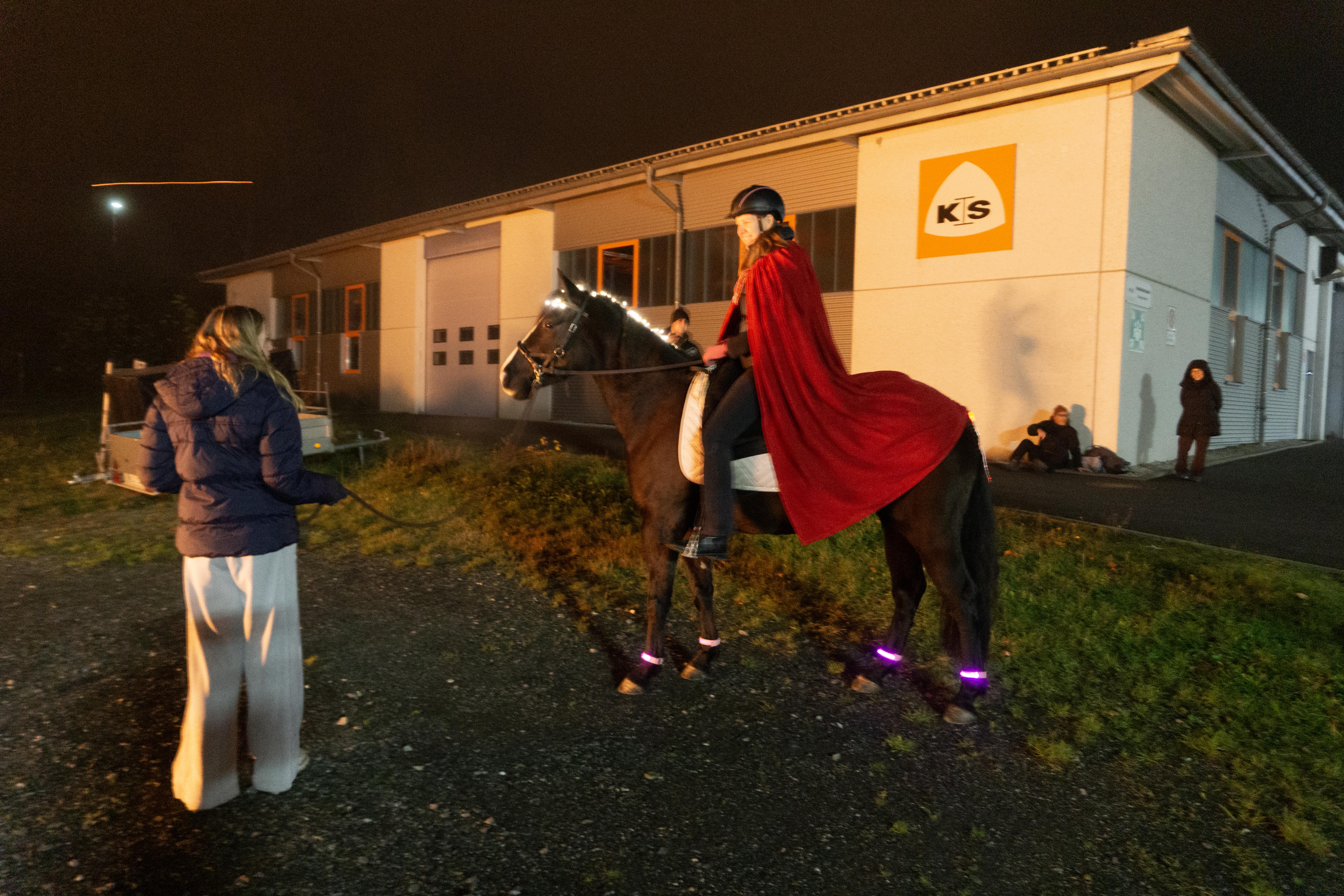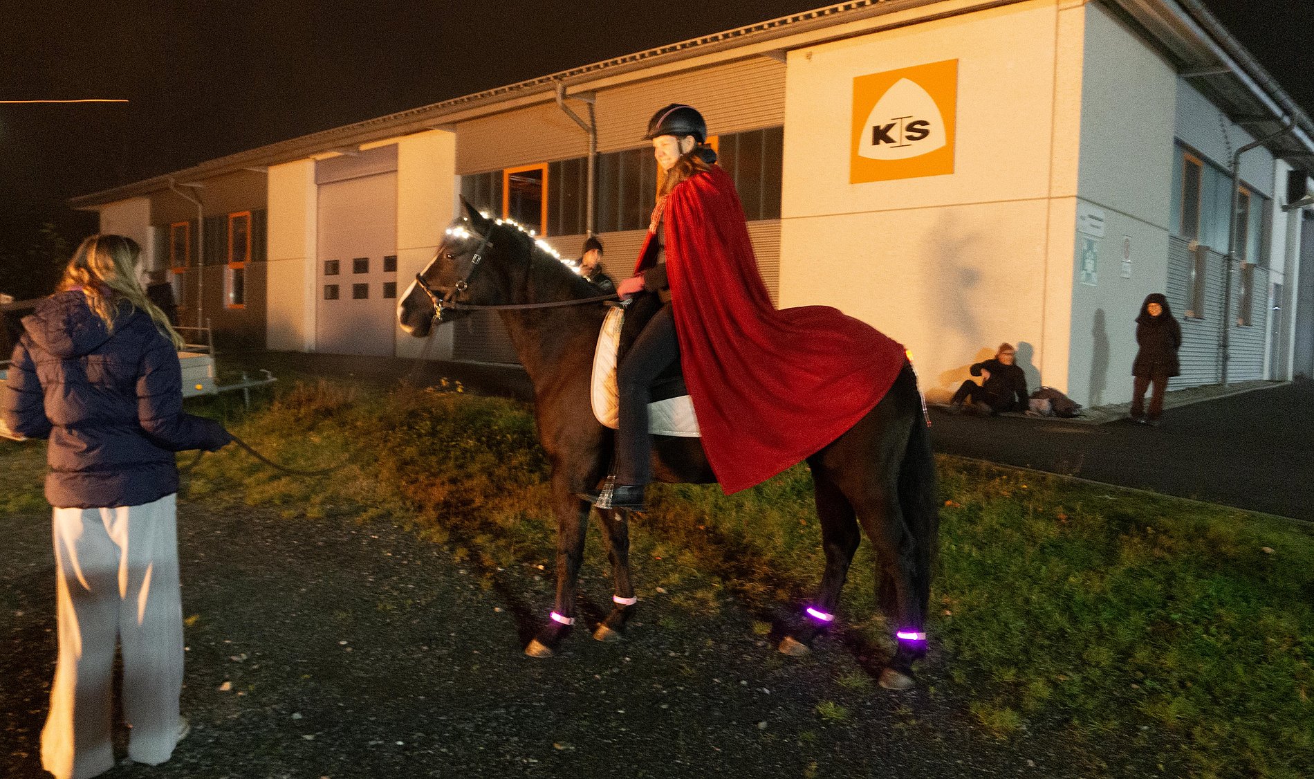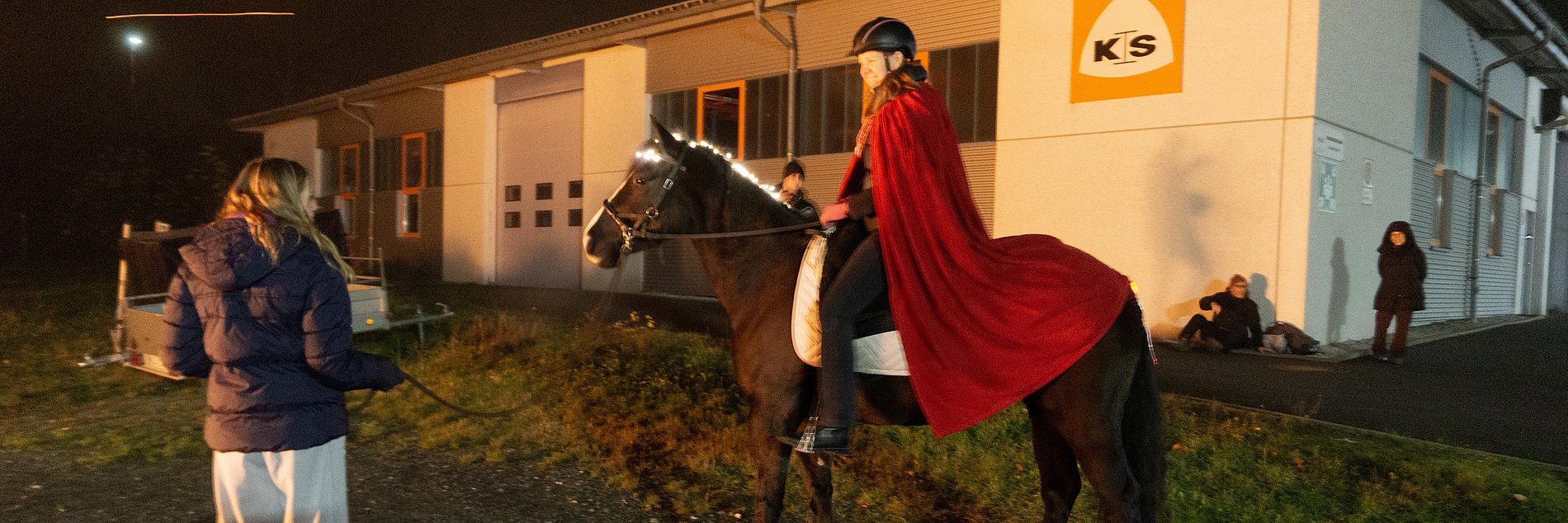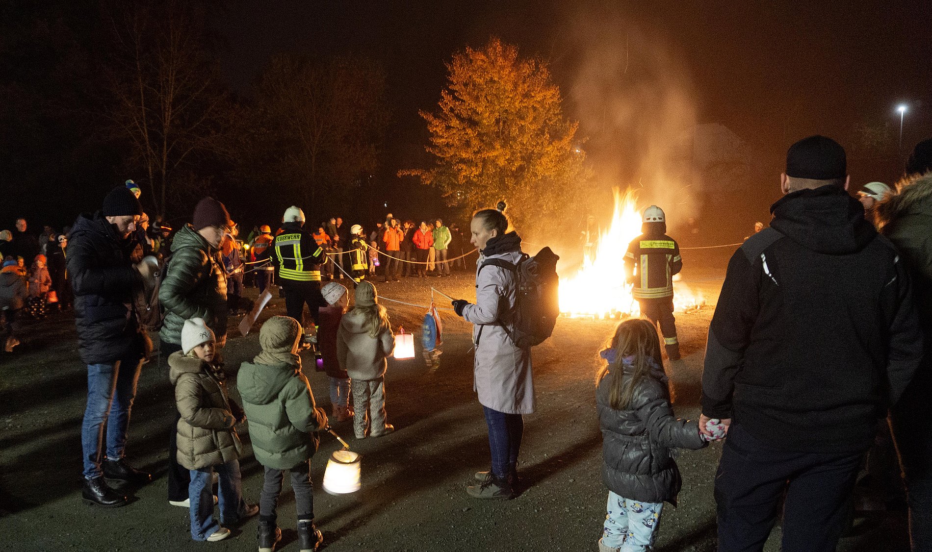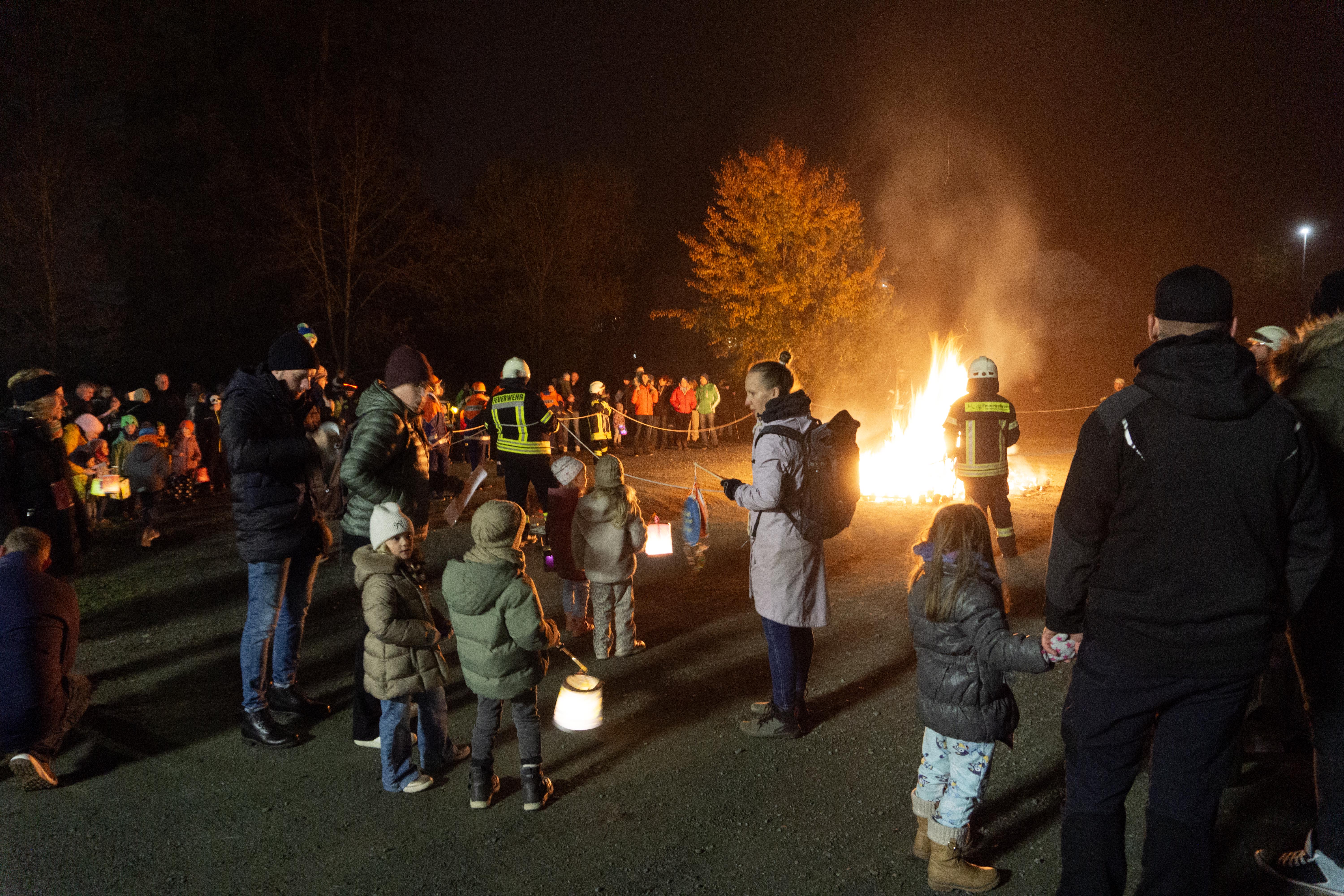 Am Freitag, dem 7.11., war es dann soweit. Die Kinder des Kindergarten Eden trafen sich zusammen mit ihren Eltern und ihren Erzieherinnen vor dem Kindergarten in Schmitten. Nach der Begrüßung wurde gleich ein Lied gesungen, musikalisch unterstützt von zwei Posaunisten. Angeführt vom Heiligen Martin auf seinem Pferd und begleitet von der Jugendfeuerwehr zog der Zug durch Schmitten zum Gelände der Firma Karl Schmidt. Dort wartete ein großes Feuer auf die staunenden Kinder. Sie konnten den Heiligen Martin auch aus der Nähe erleben und sein braves Pferd füttern.